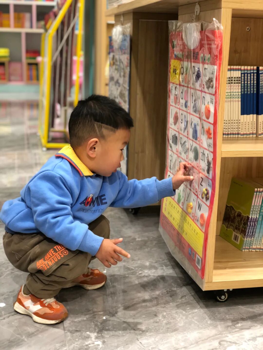 少儿类图书及益智玩具深受小朋友的喜爱,吸引不少家长带着孩子前来购书。
