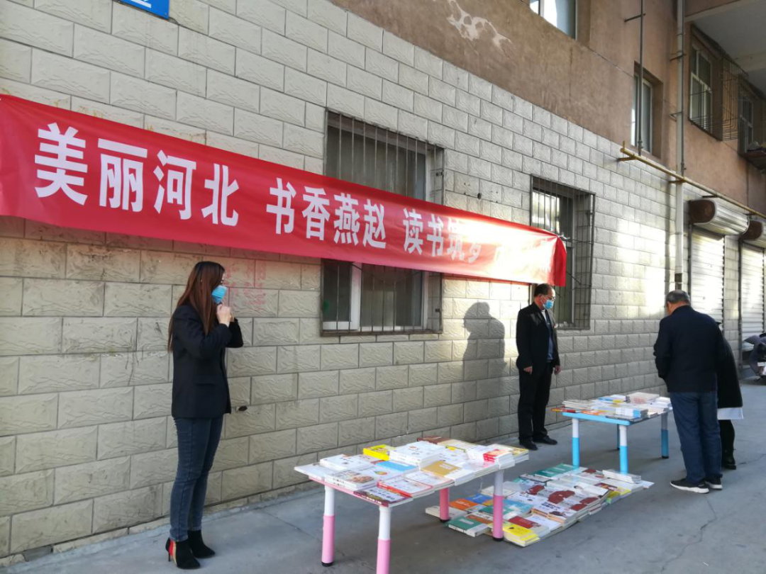 在店外,涿鹿县店的工作人员走进涿鹿县东兴社区,为那里的居民送去墨韵书香。