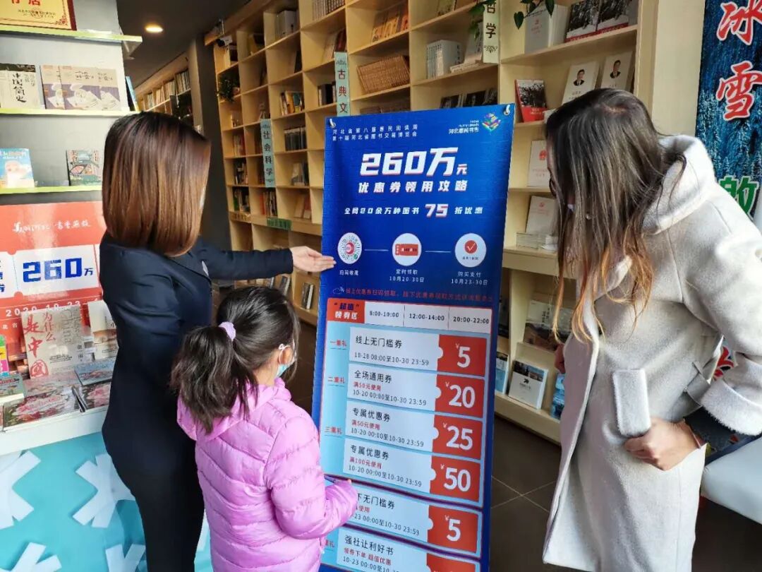 崇礼区新华书店自第八届惠民阅读周暨2020河北惠民书市开展以来,在线上线下共同发力,宣传此次活动福利,吸引不少读者前来购书。