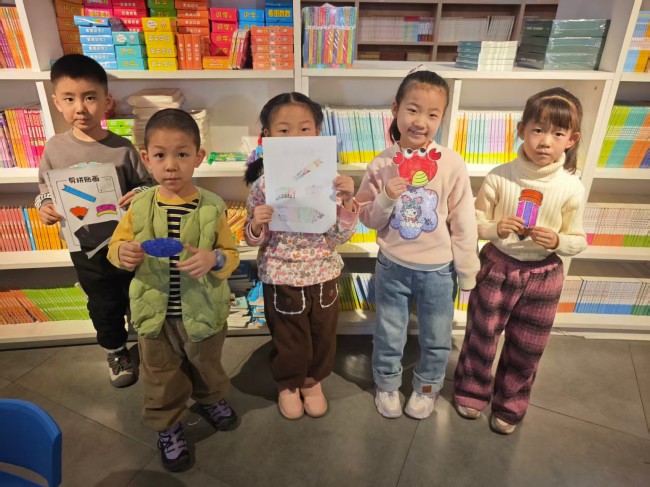 以创意为媒,让图形焕彩。2月6日下午,市店图书大厦绘本馆“拾趣图形·巧手拼贴派对”手工课活动如期举行。活动邀请小读者们走进趣味图形的世界,在轻松愉悦的氛围中解锁创意拼贴时光。活动现场,小读者们满 怀好奇地探索不同形状的奥秘,在店内员工的耐心引导下,拼一拼、粘一粘。简单的圆形、三角形、长方形,通过孩子们的奇思妙想,化作旋转的电风扇、张牙舞爪的小螃蟹、实用的小铅笔等鲜活形象。手工课通过趣味互动的形式,让小朋友们在欢乐中感受图形魅力、体验创作乐趣,大家边玩边学,不仅加深了对图形的认知,更在动手实践中锻炼了创造力与专注力,收获了满满成就感。