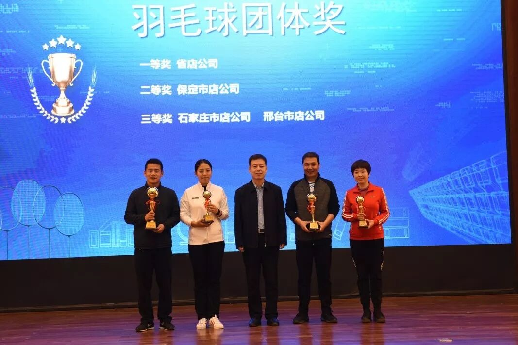 10月24日,省店公司2019年业务技能比赛及乒羽团体赛在新华大厦圆满落下帷幕。河北出版传媒集团公司党委副书记、工会主席赵瑞霞,省店公司领导于慧丰、韩丽璞、曹金民、白勤玉、王亮、庞亚辉、陈志红、张文强出席闭幕式,并为获奖团队和选手颁奖。