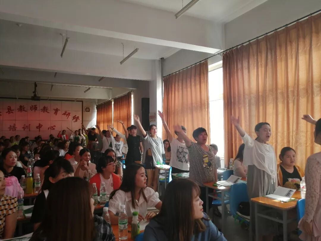 在上午的活动中,王云霞老师带领各位老师做“暖身”工作,通过分组,选队长等环节,激发大家的积极性,活跃了现场气氛。