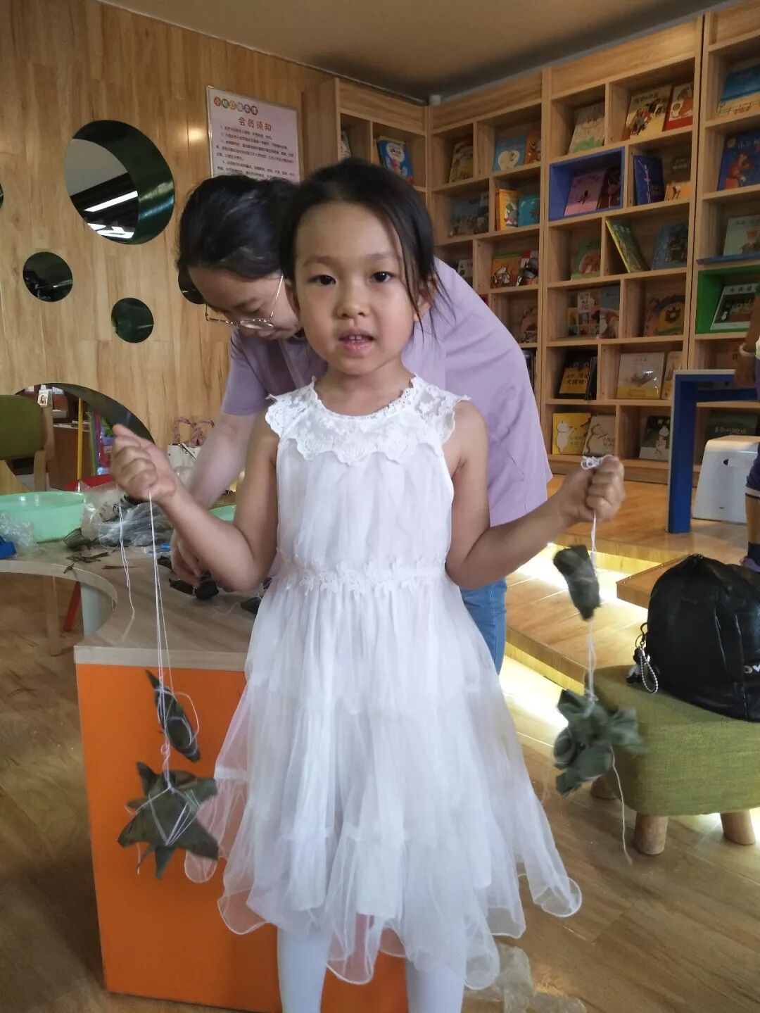 小朋友们也跟着老师、家长,有模有样地包了起来。