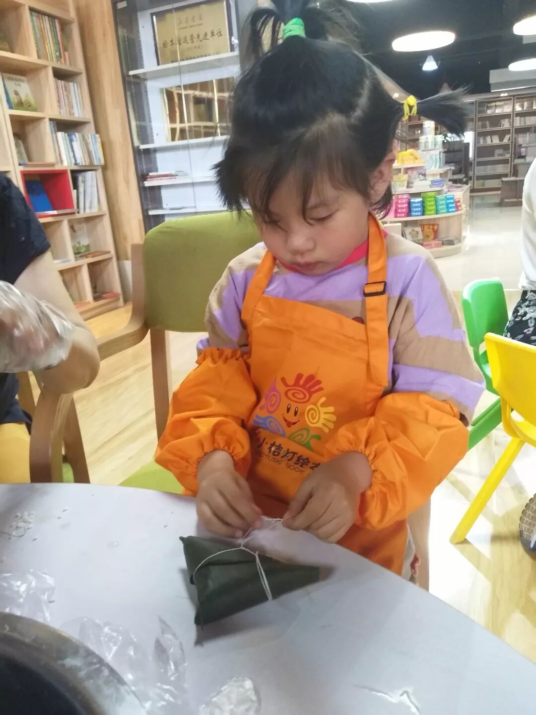 一会儿工夫,一片片清香的粽叶、一粒粒晶莹的糯米,在家长和老师的帮助下,通过孩子们的一双双小手,变成了一个个诱人的粽子。