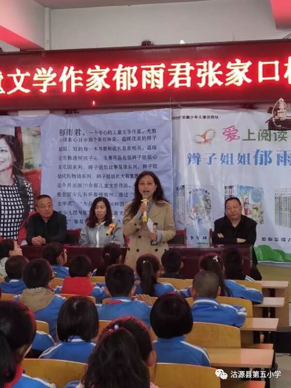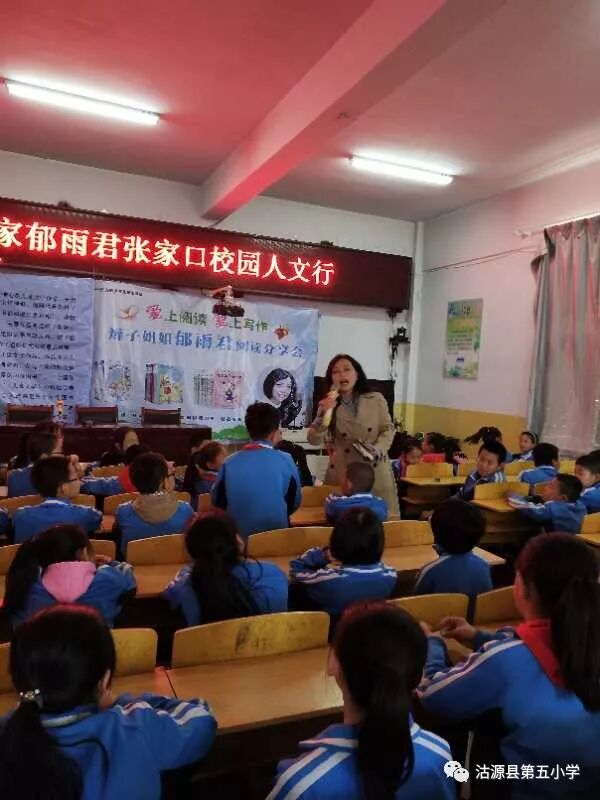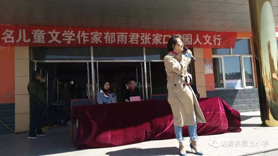 5月13日上午,我国著名儿童文学作家郁雨君张家口校园人文行走进第五小学,教育局及新华书店领导参加了这次活动。